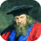 For the app icon a fragment of Ilya Repin’s Portrait of Dmitry Ivanovich Mendeleev wearing the Edinburgh University professor robe (1885; The State Tretyakov Gallery, Moscow) is used.